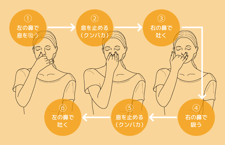 交感神経に働きかける右鼻と副交感神経を刺激する左鼻を交互に呼吸するので、自律神経のバランスが整います。