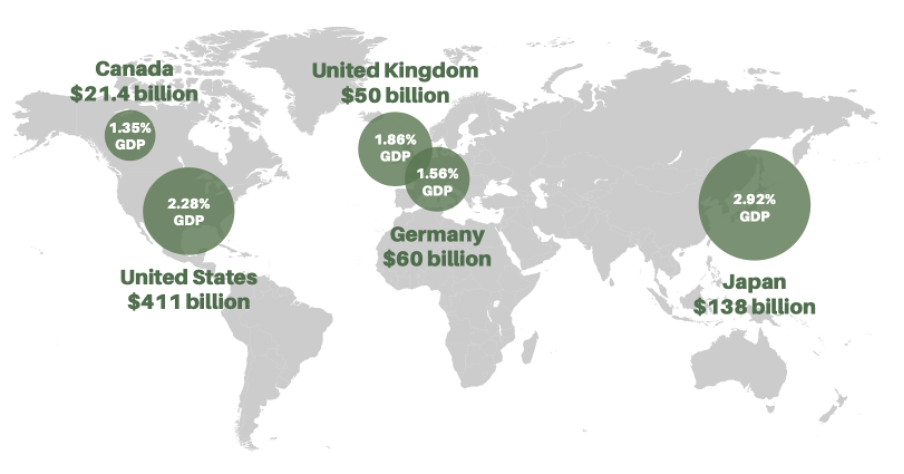 日本全体の経済損失を見ると、約20兆円、GDP比で2.92%にも及び、ほかの国よりも高い割合です。