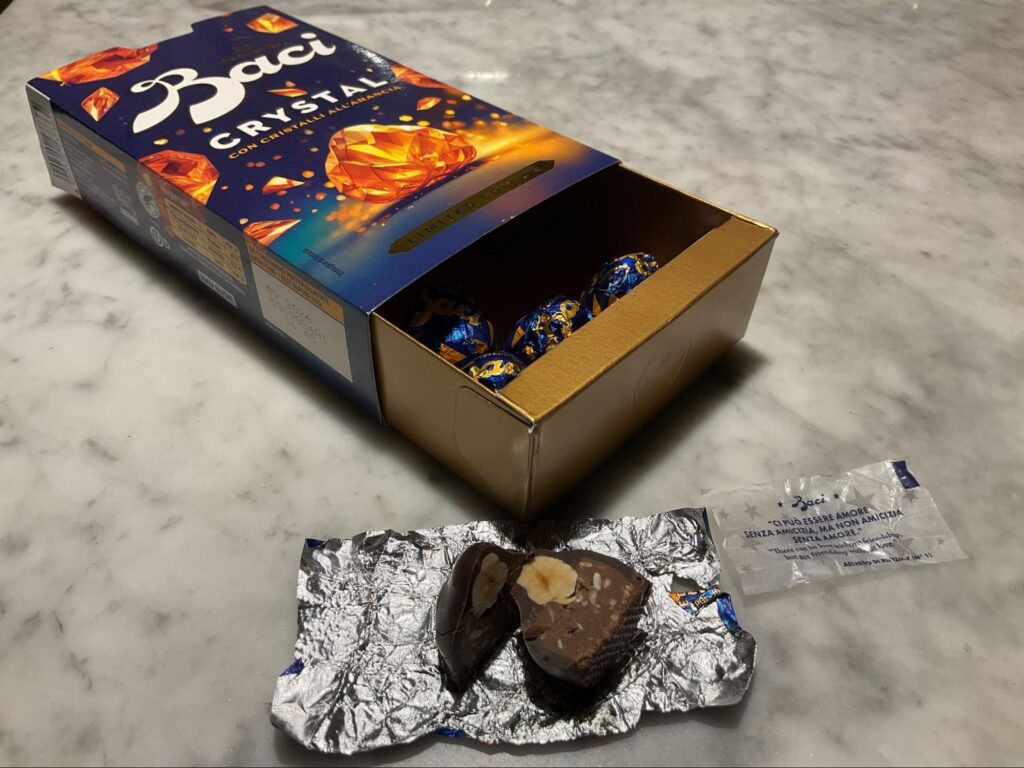 オレンジのフレッシュな香りをつけた粒状のキャラメルが、中に入っているBaciのナッツチョコレートととても相性が良く、美味しいです。