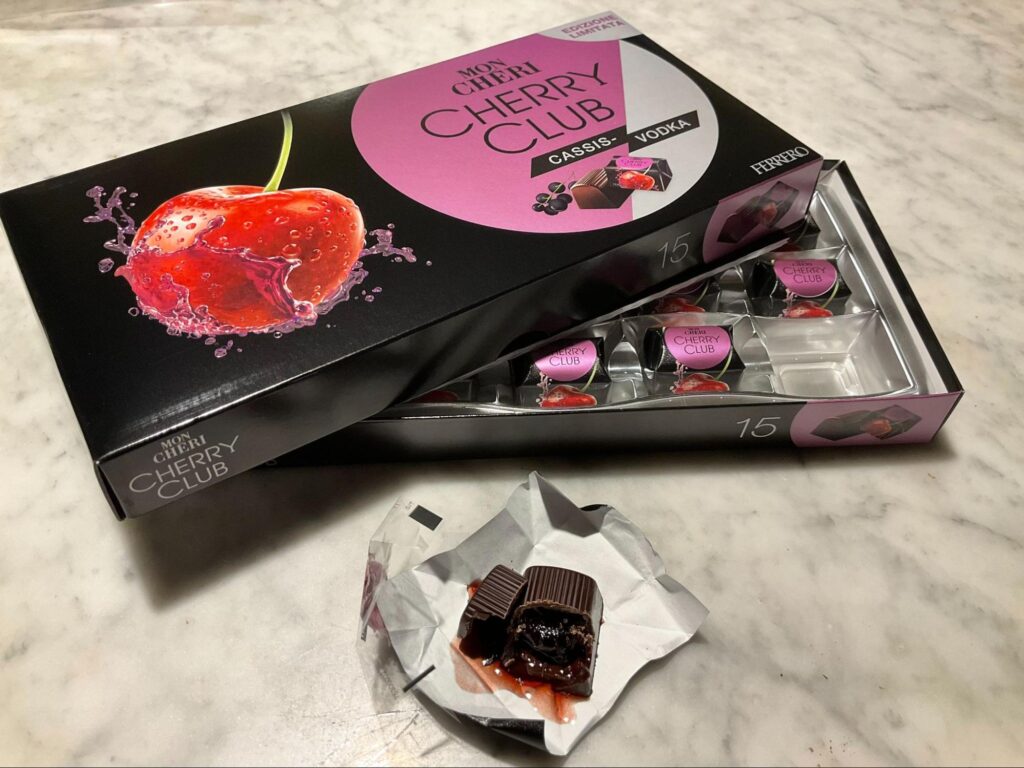 筆者撮影:チェリーリキュール入りの元祖MonCHERIより美味しく感じる、限定版