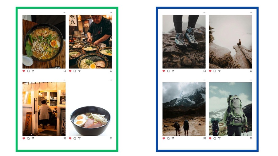 例えば、次の画像の緑枠と青枠の投稿を比べてみてください。